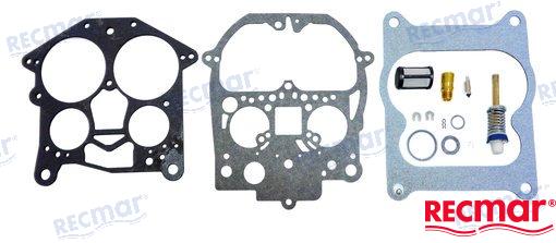 Recmar® carburetor repair kit for Volvo Penta MerCruiser and OMC, equipped with Rochester Quadrajet 4-barrel carburetor.