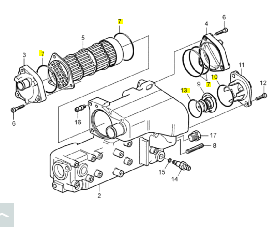 Tento RecmarSada těsnění chladiče sladké vody (radiátoru) ® je navržena tak, aby obsahovala nezbytné komponenty pro demontáž, odvápňování, čištění a opětovnou montáž chladiče. O-kroužky s číslem dílu 3842016 těsní mosaznou vložku do pouzdra a jejich konců. Menší O-kroužky s čísly dílů 3583830 a 3586514 se umisťují na pouzdro termostatu a na kryt pouzdra termostatu. Toto jsou některé oblíbené jednotky výměníku tepla, které lze tuto sadu těsnění použít: 3840127, 3840128, 3840129, 22850978, 21847335, 22850982.