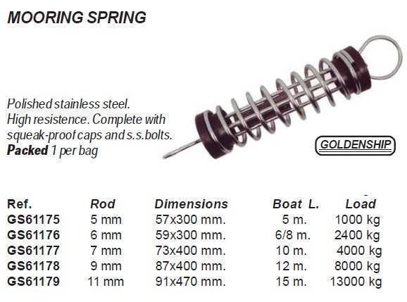 MOORING SPRING w/SS Bolts Polished stainless steel. High resistence. Complete with squeak-proof caps and s.s.bolts.(pick your size)