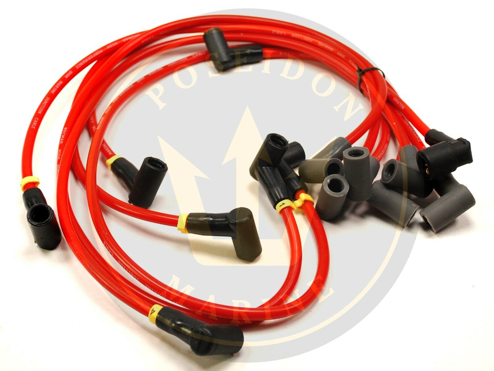 Juego de cables para bujías de alta resistencia de 8 mm de grado marino Recmar®. Para MerCruiser/Volvo Penta V6 4.3 equipados con encendido electrónico.