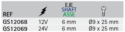 Waterproof type. Self-parking. Sweep angle 110º. 6mm shaft