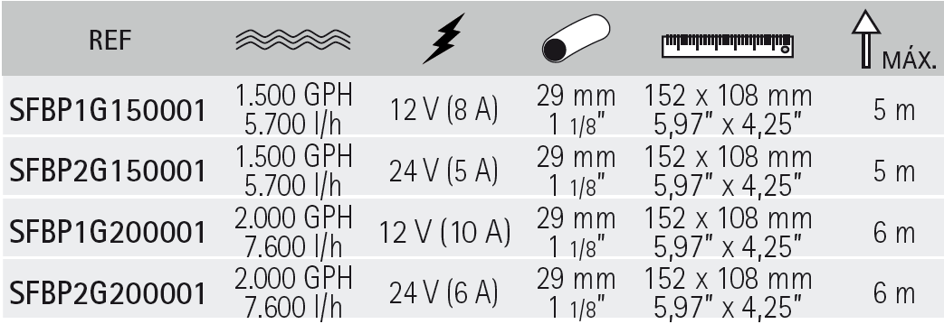 Flow rate: 2.000 GPH (7.600 L/h)