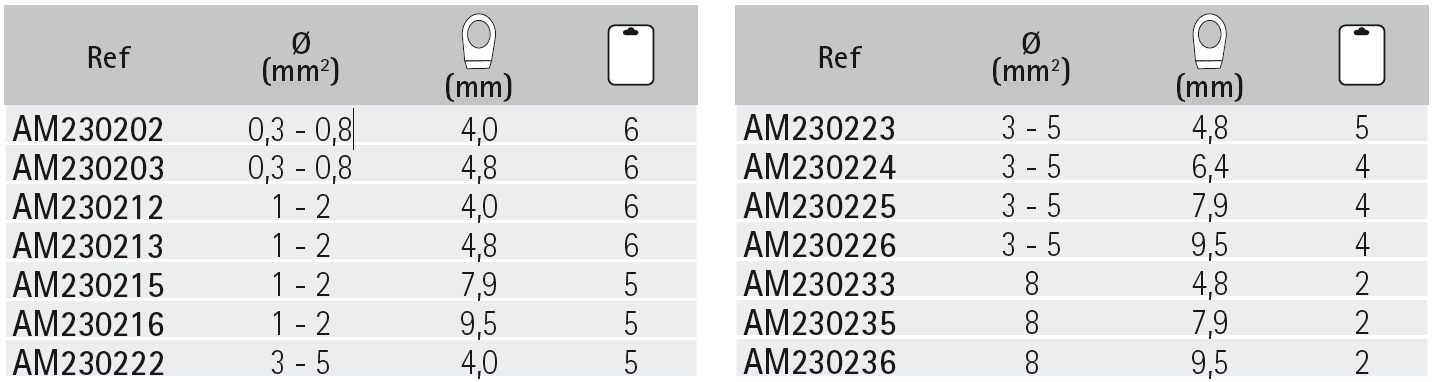 Tinned copper terminals with nylon insulation. Double crimp.
